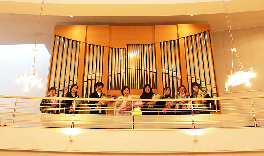 今回は、元寺小路教会オルガン奉仕者グループと、毎回オルガン研修会の指導をしてくださっている坂戸真美さんが特別出演してくださるパイプオルガンのコンサートです。普段、ミサの中で聞きなれている典礼聖歌の演奏とは違い、パイプオルガンの多彩な音色が大聖堂に響き渡りました。