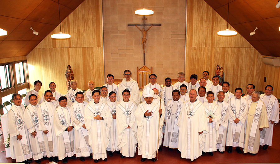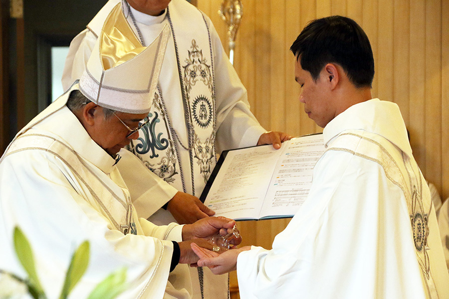ミサには、エスコラピオス修道会総長様、アジアパシフィック管区長様はじめ、エスコラピオス修道会の神父様方と仙台教区の神父様方34人、そして東京からエスコラピアス修道会、仙台教区内の教会の宣教者、修道会のシスター方、一本杉教会からの巡礼団や、第5地区内の小教区からの信徒の方々などを含む200人余りがあずかり、心をひとつにして新しい司祭誕生の喜びを共にしました。受階者の身内の方々も韓国、ベトナムから駆けつけられました。