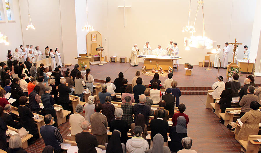 その時、司式されたガクタン司教様は「皆さん、ナザレの聖家族の愛の交わりの中で育まれた救い主イエス・キリストの受肉の神秘は、私たちにとって、深い喜びと確かな希望のよりどころです。この式は、私たちにとって、恵みといつくしみの豊かな体験への序曲です」と呼びかけられました。