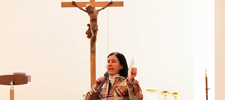 聖年の閉幕式の直前、主に第4地区で宣教司牧者として活躍する、ケベック外国宣教会の信徒宣教者ジュリ・フェクトさんが主宰する、巡礼の数々を体験した巡礼者たちが、ジュリさんにその素晴らしかった巡礼について感謝の言葉を伝えていた。そこで「一人で聞くのはもったいない。もっと多くの人に聞いてほしい」ということで、3人の方に話していただくことにいたしました、と出席者に話し、3人の方が次々と分かち合ってくださいました。